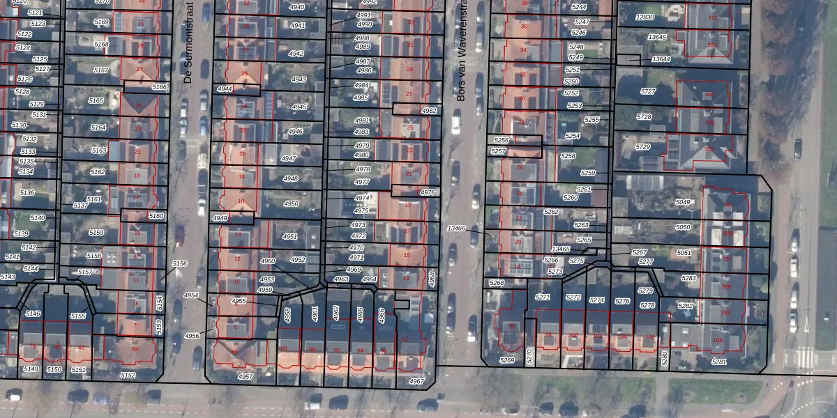 Het perceel waarop Bors van Waverenstraat 19 staat heeft een oppervlakte van 175 m². Dit is een middelgroot perceel. De perceeloppervlakte wordt geregistreerd door het Kadaster. Gedetailleerde informatie over de maten van dit perceel kunt u vinden in het rapport Kadastrale kaart met maatvoering van Bors van Waverenstraat 19.