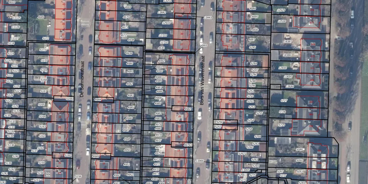 Gebruik de zoekbalk of klik op een perceel voor informatie over de adressen binnen dit perceel.