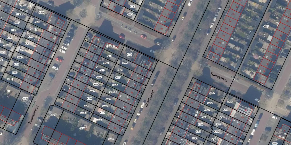 Het perceel waarop Boschplaat 50 staat heeft een oppervlakte van 137 m². Dit is een middelgroot perceel. De perceeloppervlakte wordt geregistreerd door het Kadaster. Gedetailleerde informatie over de maten van dit perceel kunt u vinden in het rapport Kadastrale kaart met maatvoering van Boschplaat 50.