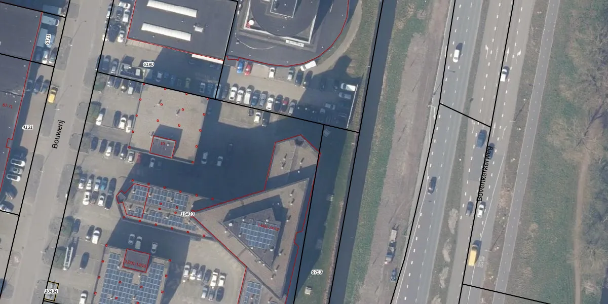 Het perceel waarop Bouwerij 14-12 staat heeft een oppervlakte van 6109 m². Dit is een zeer groot perceel. De perceeloppervlakte wordt geregistreerd door het Kadaster. Gedetailleerde informatie over de maten van dit perceel kunt u vinden in het rapport Kadastrale kaart met maatvoering van Bouwerij 14-12.