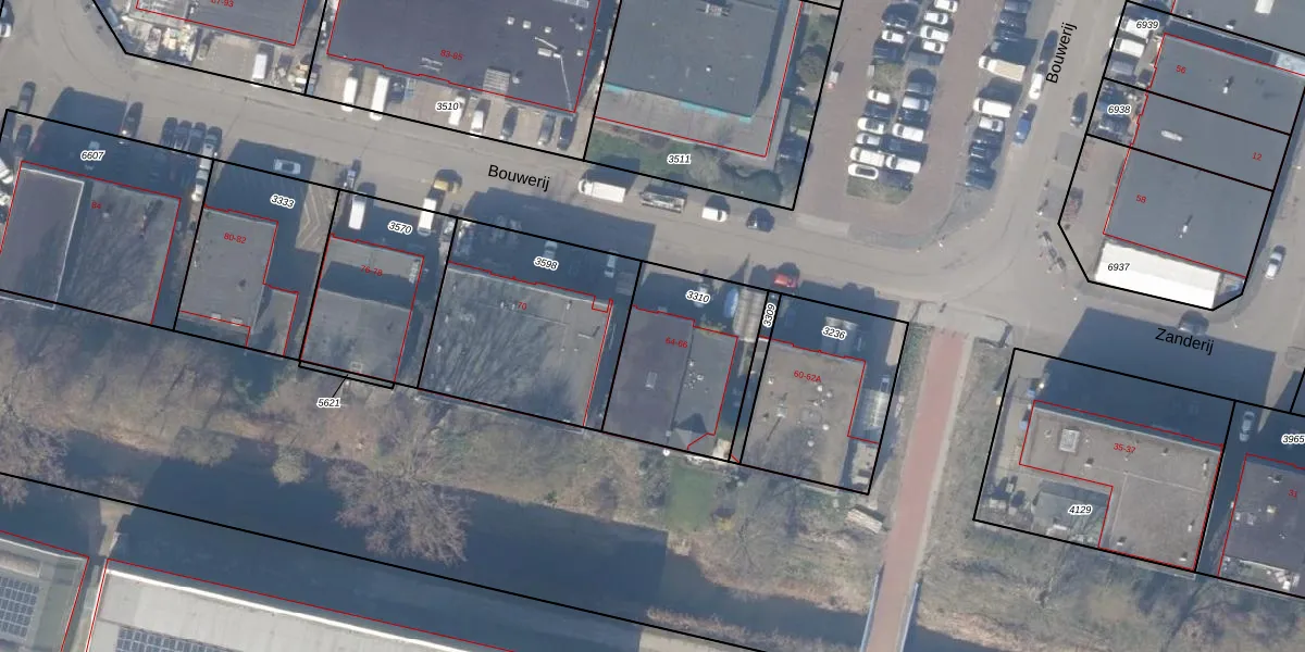 Het perceel waarop Bouwerij 66 staat heeft een oppervlakte van 540 m². Dit is een groot perceel. De perceeloppervlakte wordt geregistreerd door het Kadaster. Gedetailleerde informatie over de maten van dit perceel kunt u vinden in het rapport Kadastrale kaart met maatvoering van Bouwerij 66.