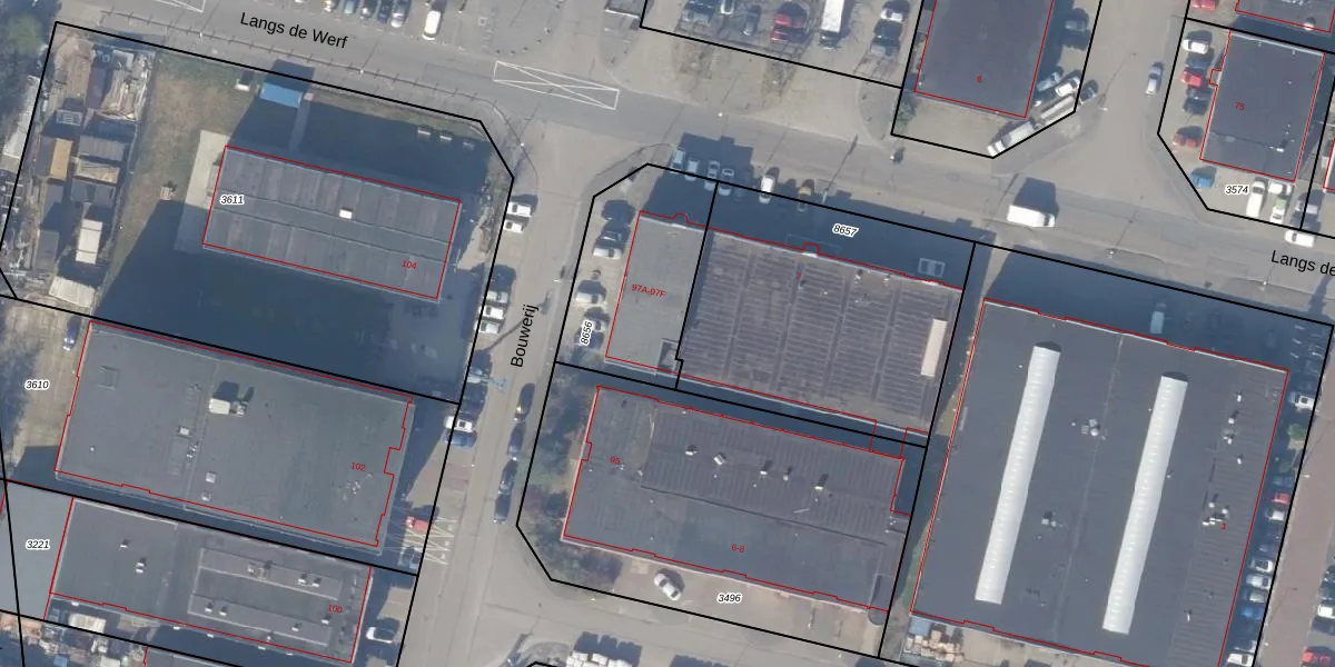 Het perceel waarop Bouwerij 97-E staat heeft een oppervlakte van 545 m². Dit is een groot perceel. De perceeloppervlakte wordt geregistreerd door het Kadaster. Gedetailleerde informatie over de maten van dit perceel kunt u vinden in het rapport Kadastrale kaart met maatvoering van Bouwerij 97-E.