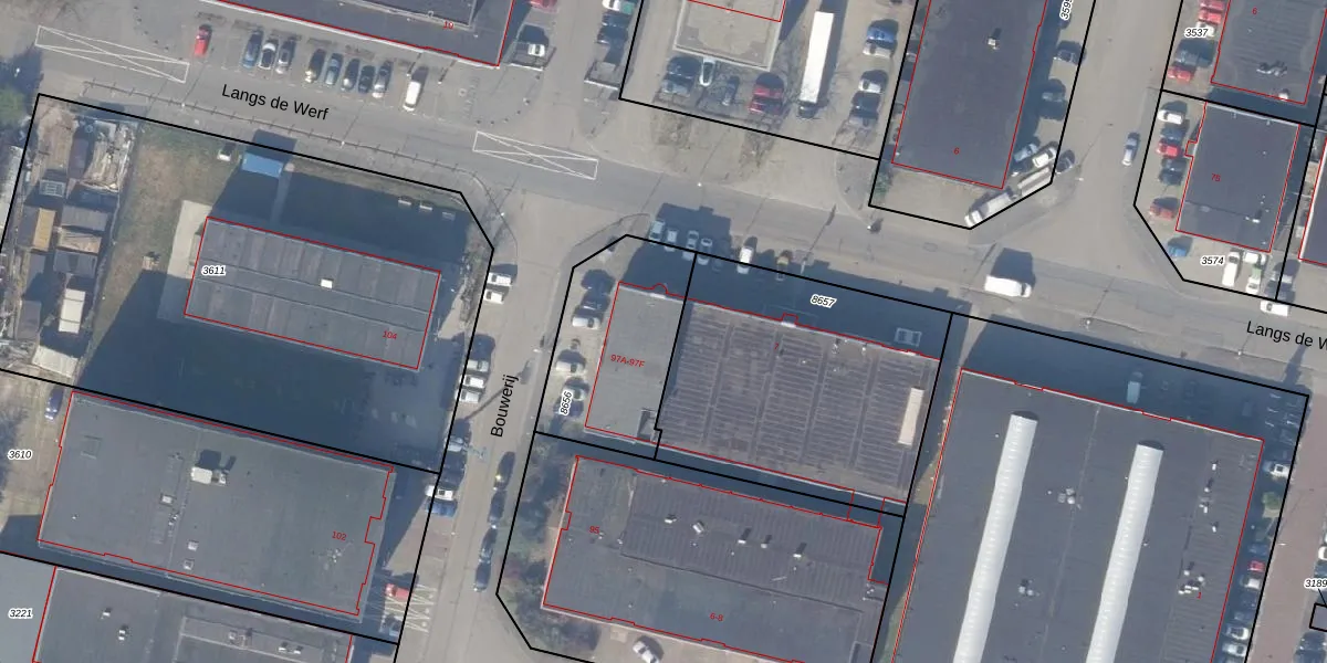 Bouwerij 97-F is gelegen op kadastraal perceel ASV00O8656. Deze kadastrale aanduiding is uniek en wordt gebruikt door het Kadaster om eigendomsrechten en andere zakelijke rechten vast te leggen. Het perceel maakt onderdeel uit van de kadastrale gemeente Amstelveen.