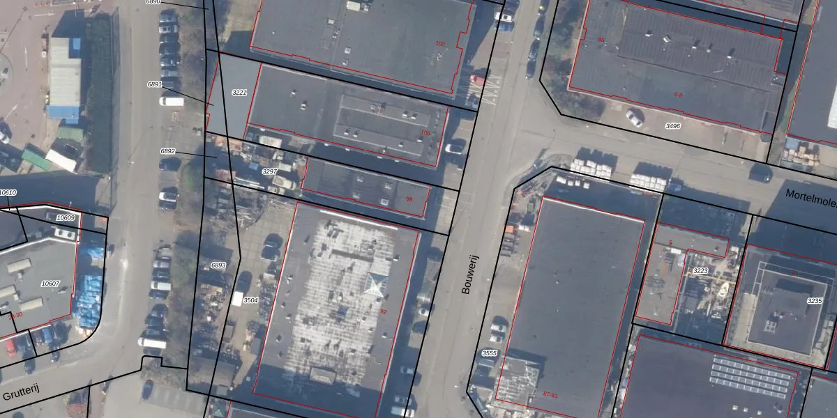 Gebruik de zoekbalk of klik op een perceel voor informatie over de adressen binnen dit perceel.