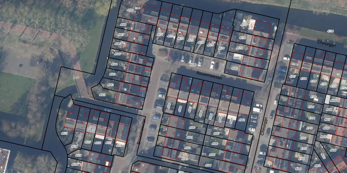 Gebruik de zoekbalk of klik op een perceel voor informatie over de adressen binnen dit perceel.