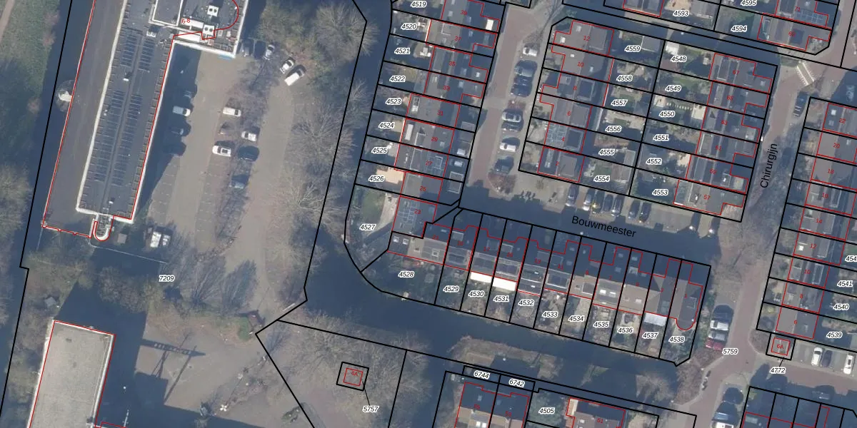 Het perceel waarop Bouwmeester 23 staat heeft een oppervlakte van 265 m². Dit is een middelgroot perceel. De perceeloppervlakte wordt geregistreerd door het Kadaster. Gedetailleerde informatie over de maten van dit perceel kunt u vinden in het rapport Kadastrale kaart met maatvoering van Bouwmeester 23.
