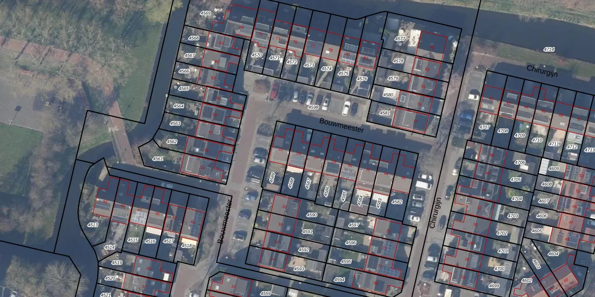 Gebruik de zoekbalk of klik op een perceel voor informatie over de adressen binnen dit perceel.