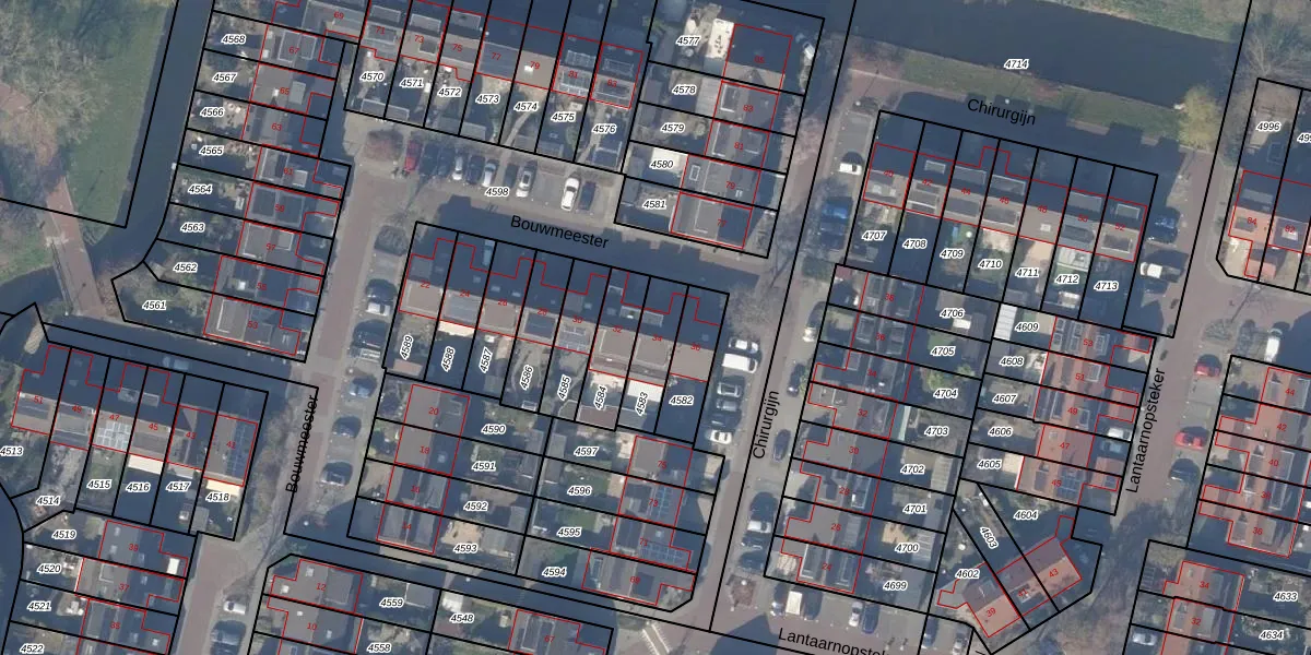Gebruik de zoekbalk of klik op een perceel voor informatie over de adressen binnen dit perceel.