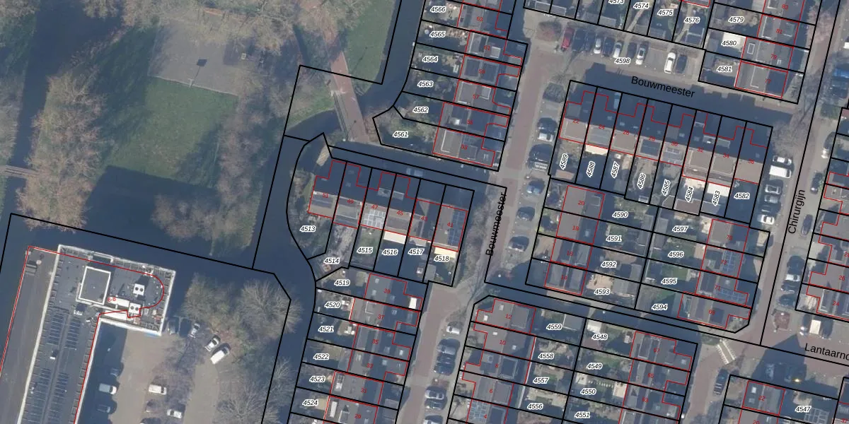 Het perceel waarop Bouwmeester 43 staat heeft een oppervlakte van 143 m². Dit is een middelgroot perceel. De perceeloppervlakte wordt geregistreerd door het Kadaster. Gedetailleerde informatie over de maten van dit perceel kunt u vinden in het rapport Kadastrale kaart met maatvoering van Bouwmeester 43.