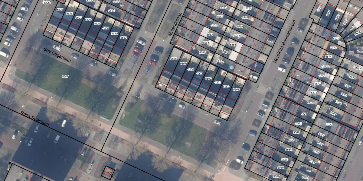 Gebruik de zoekbalk of klik op een perceel voor informatie over de adressen binnen dit perceel.