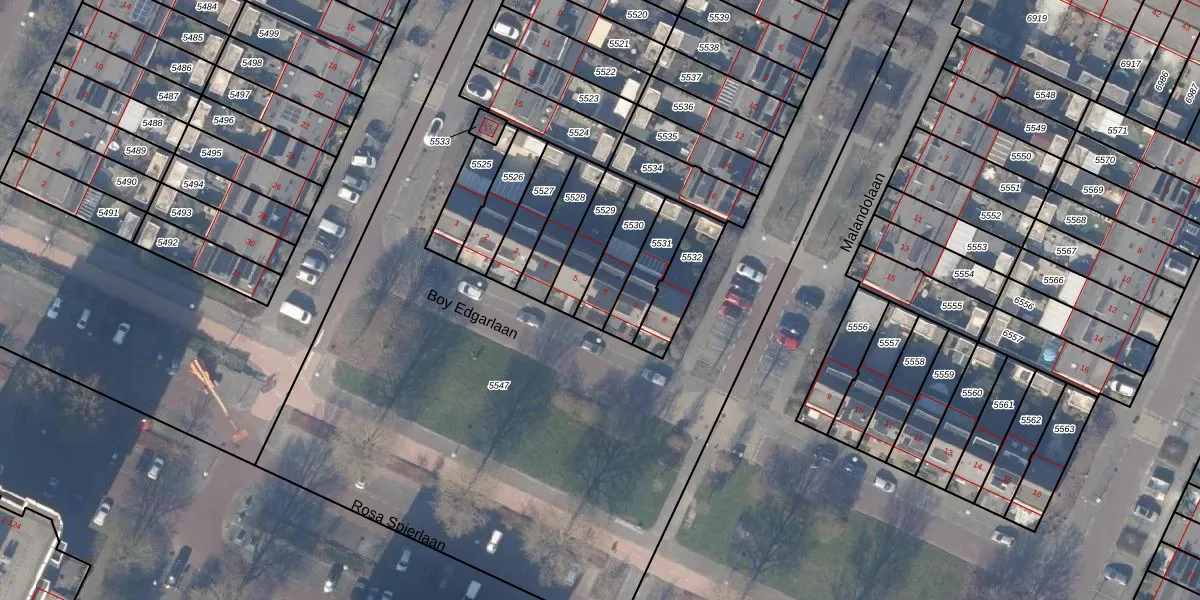 Gebruik de zoekbalk of klik op een perceel voor informatie over de adressen binnen dit perceel.