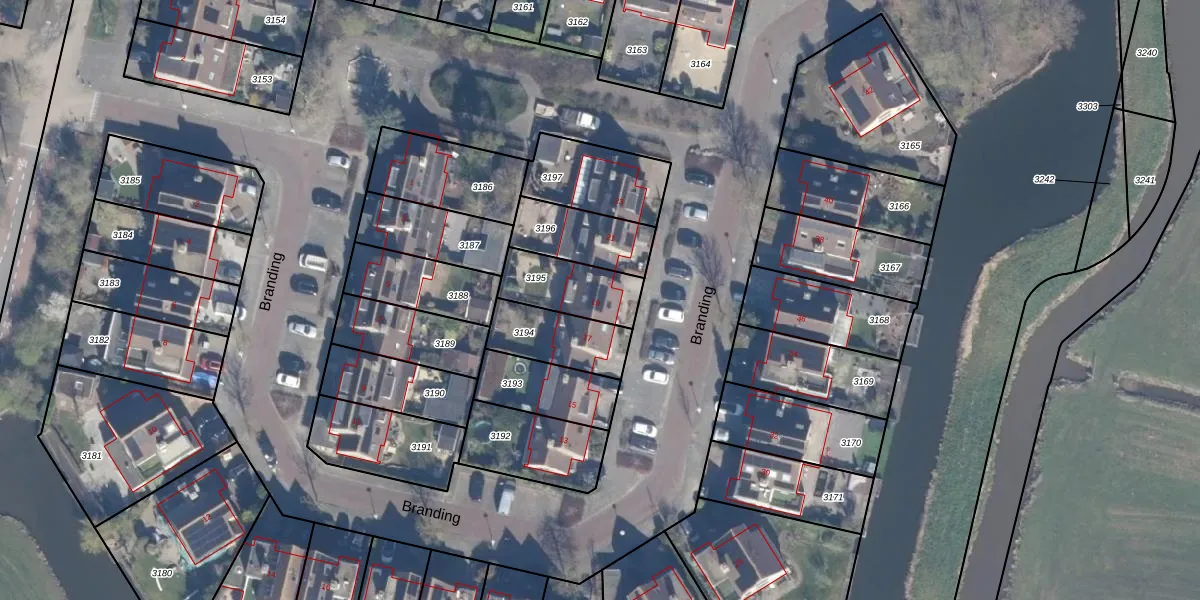 Het perceel waarop Branding 19 staat heeft een oppervlakte van 196 m². Dit is een middelgroot perceel. De perceeloppervlakte wordt geregistreerd door het Kadaster. Gedetailleerde informatie over de maten van dit perceel kunt u vinden in het rapport Kadastrale kaart met maatvoering van Branding 19.