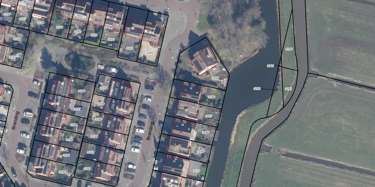 Het perceel waarop Branding 40 staat heeft een oppervlakte van 280 m². Dit is een middelgroot perceel. De perceeloppervlakte wordt geregistreerd door het Kadaster. Gedetailleerde informatie over de maten van dit perceel kunt u vinden in het rapport Kadastrale kaart met maatvoering van Branding 40.