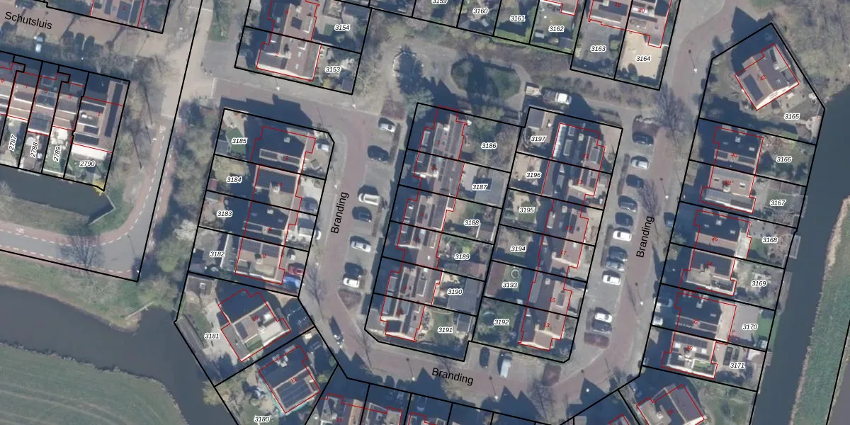 Gebruik de zoekbalk of klik op een perceel voor informatie over de adressen binnen dit perceel.