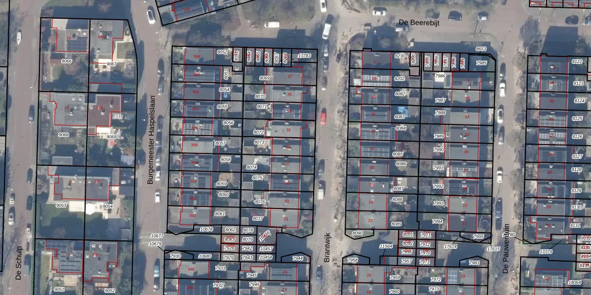 Gebruik de zoekbalk of klik op een perceel voor informatie over de adressen binnen dit perceel.