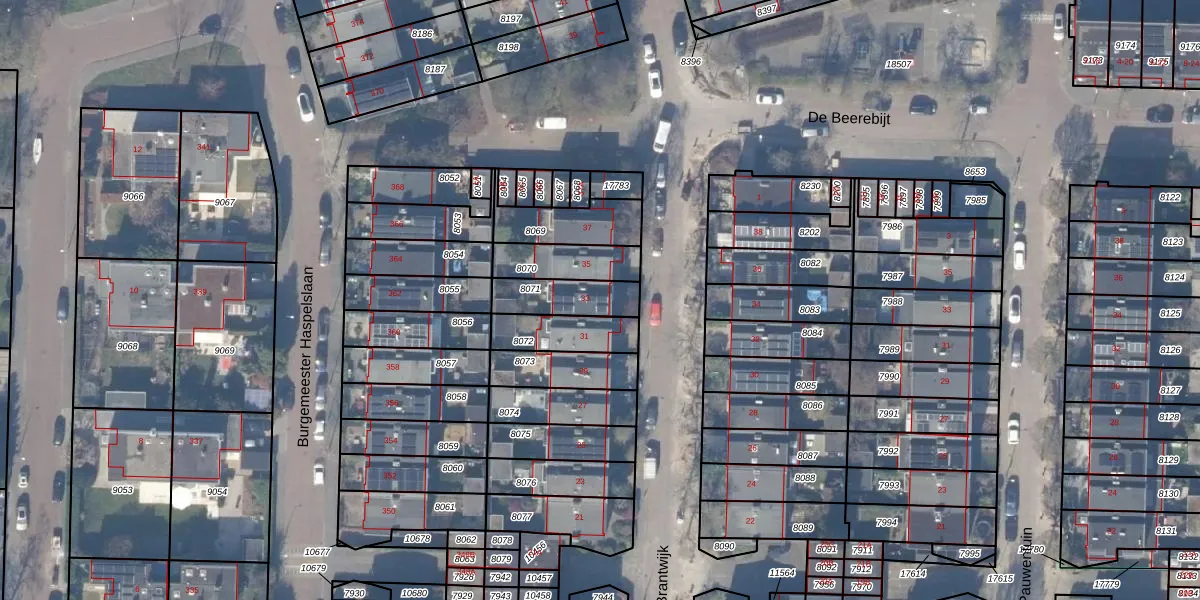 Gebruik de zoekbalk of klik op een perceel voor informatie over de adressen binnen dit perceel.