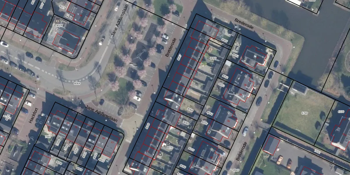Brederode 8 is gelegen op kadastraal perceel ASV00O8067. Deze kadastrale aanduiding is uniek en wordt gebruikt door het Kadaster om eigendomsrechten en andere zakelijke rechten vast te leggen. Het perceel maakt onderdeel uit van de kadastrale gemeente Amstelveen.