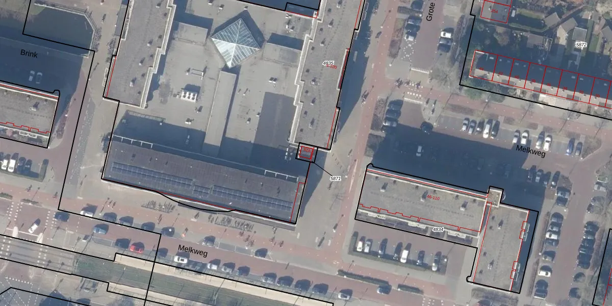 Brink 82-A is gelegen op kadastraal perceel ASV00M5871. Deze kadastrale aanduiding is uniek en wordt gebruikt door het Kadaster om eigendomsrechten en andere zakelijke rechten vast te leggen. Het perceel maakt onderdeel uit van de kadastrale gemeente Amstelveen.