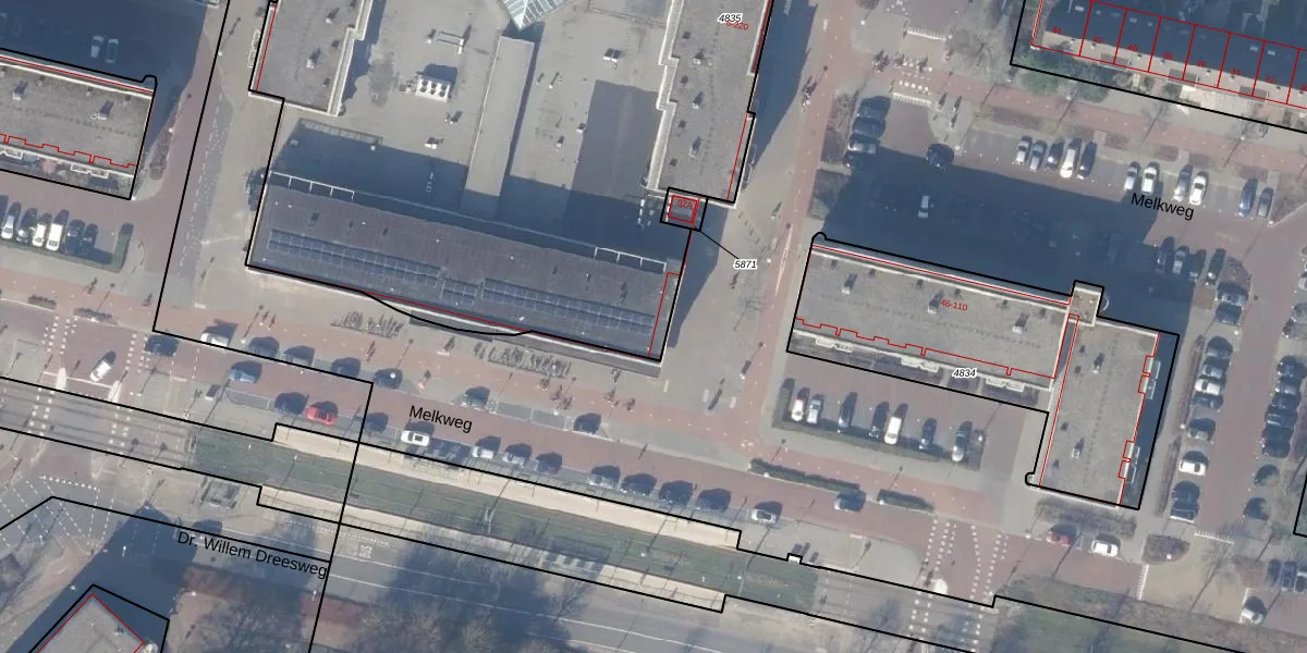 Het adres ligt op het perceel ASV00-M-4835, dat zich in de kadastrale gemeente Amstelveen bevindt. Het perceel is met 5632 m² relatief groot. Het gemiddelde ligt in de kadastrale gemeente Amstelveen op 1598,78 m². Het kleinste perceel in de kadastrale gemeente is 0 m² groot. De grootste perceeloppervlakte is 1,78 km². Op het perceel liggen in totaal 90 adressen. In de Basisregistratie Kadaster (BRK) werden de grenzen van het perceel geregistreerd op 12-03-2001.