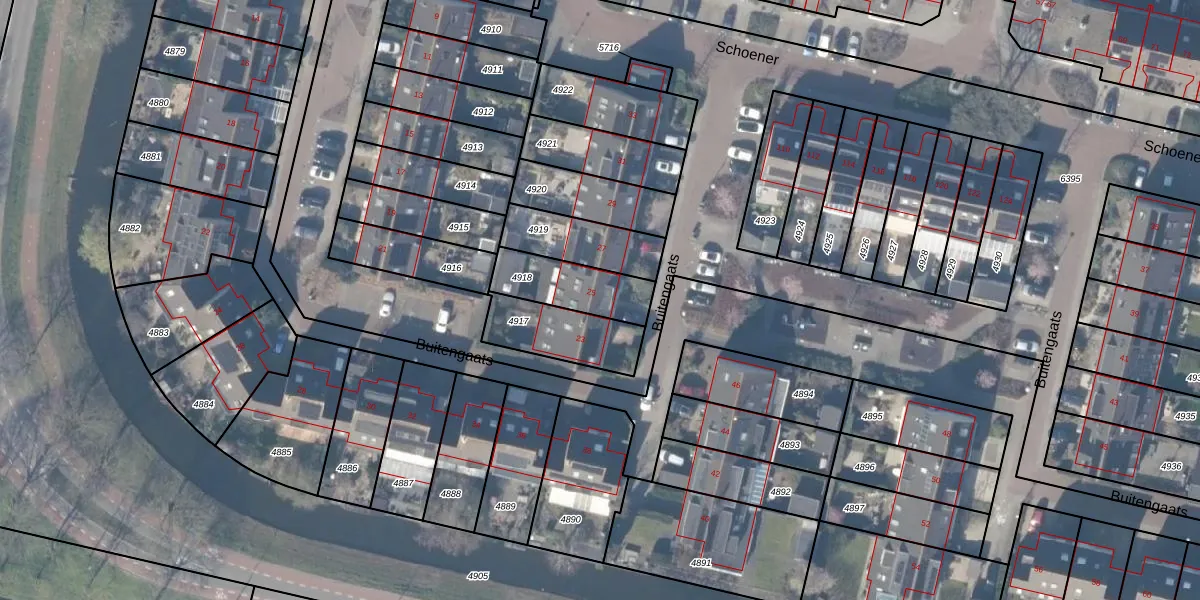Het perceel waarop Buitengaats 25 staat heeft een oppervlakte van 202 m². Dit is een middelgroot perceel. De perceeloppervlakte wordt geregistreerd door het Kadaster. Gedetailleerde informatie over de maten van dit perceel kunt u vinden in het rapport Kadastrale kaart met maatvoering van Buitengaats 25.