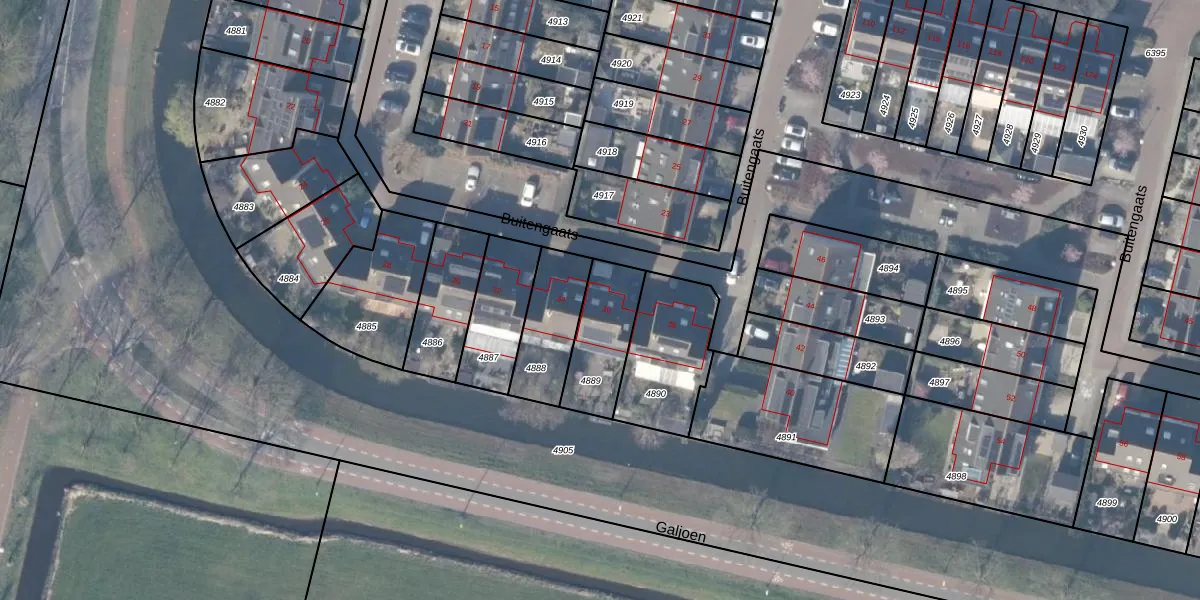 Het perceel waarop Buitengaats 36 staat heeft een oppervlakte van 230 m². Dit is een middelgroot perceel. De perceeloppervlakte wordt geregistreerd door het Kadaster. Gedetailleerde informatie over de maten van dit perceel kunt u vinden in het rapport Kadastrale kaart met maatvoering van Buitengaats 36.