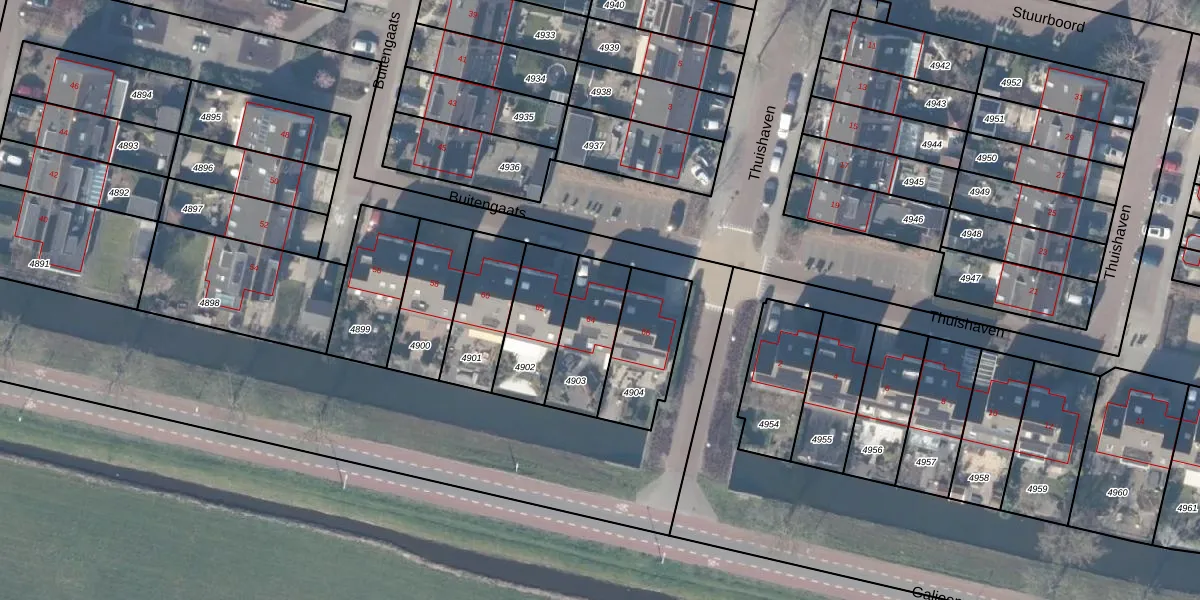Buitengaats 64 is gelegen op kadastraal perceel ASV00M4903. Deze kadastrale aanduiding is uniek en wordt gebruikt door het Kadaster om eigendomsrechten en andere zakelijke rechten vast te leggen. Het perceel maakt onderdeel uit van de kadastrale gemeente Amstelveen.