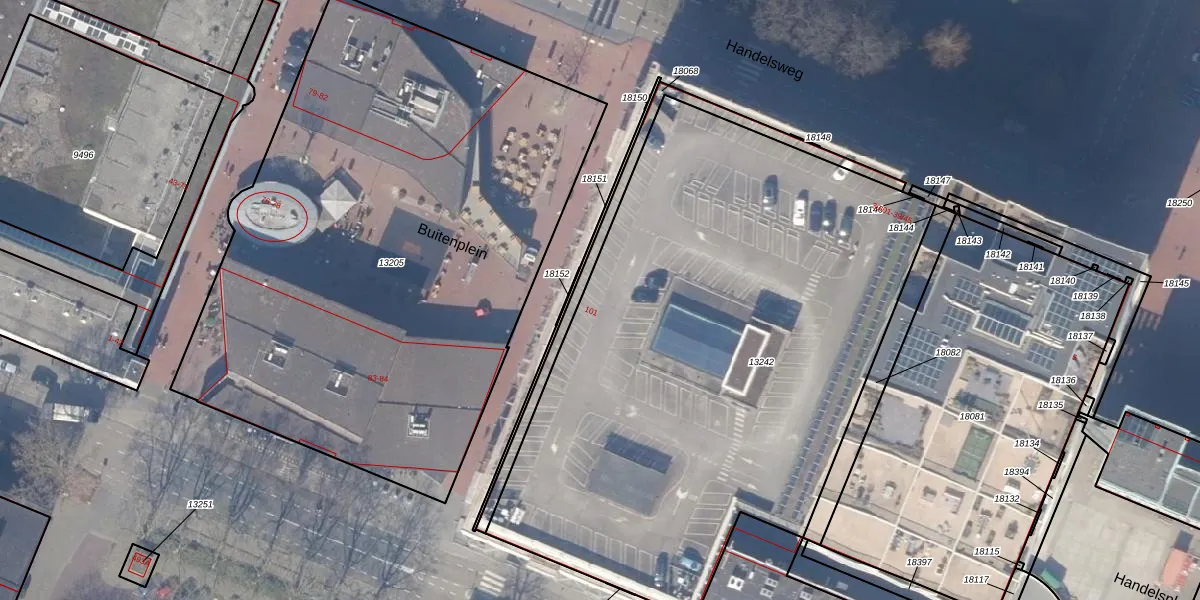Het perceel waarop Buitenplein 101 staat heeft een oppervlakte van 3672 m². Dit is een zeer groot perceel. De perceeloppervlakte wordt geregistreerd door het Kadaster. Gedetailleerde informatie over de maten van dit perceel kunt u vinden in het rapport Kadastrale kaart met maatvoering van Buitenplein 101.