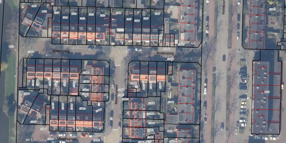 Gebruik de zoekbalk of klik op een perceel voor informatie over de adressen binnen dit perceel.