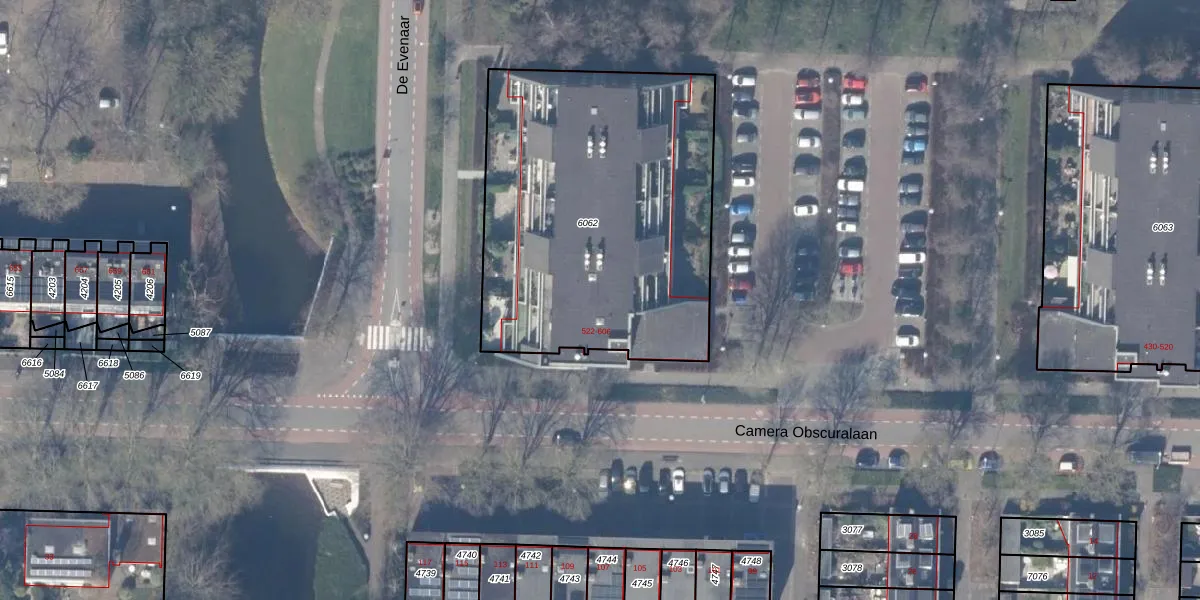 Camera Obscuralaan 544 is gelegen op kadastraal perceel ASV00I6062. Deze kadastrale aanduiding is uniek en wordt gebruikt door het Kadaster om eigendomsrechten en andere zakelijke rechten vast te leggen. Het perceel maakt onderdeel uit van de kadastrale gemeente Amstelveen.