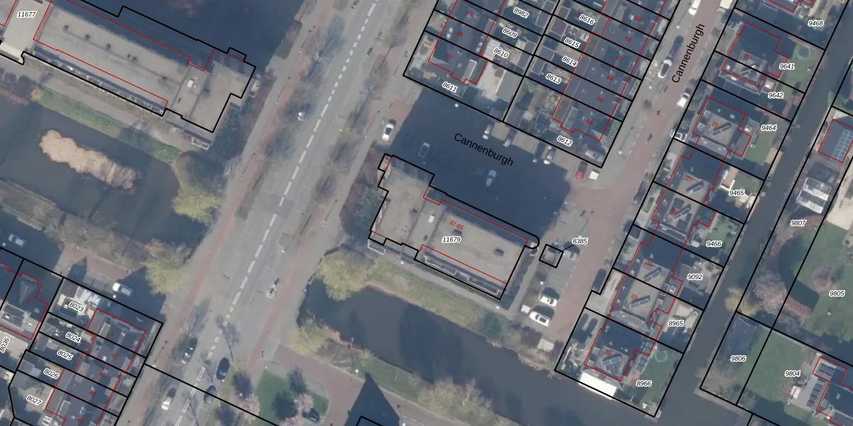 Het perceel waarop Cannenburgh 39 staat heeft een oppervlakte van 633 m². Dit is een groot perceel. De perceeloppervlakte wordt geregistreerd door het Kadaster. Gedetailleerde informatie over de maten van dit perceel kunt u vinden in het rapport Kadastrale kaart met maatvoering van Cannenburgh 39.