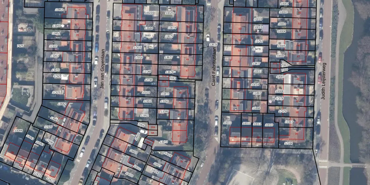 Carel Fabritiuslaan 45 is gelegen op kadastraal perceel ASV00H13472. Deze kadastrale aanduiding is uniek en wordt gebruikt door het Kadaster om eigendomsrechten en andere zakelijke rechten vast te leggen. Het perceel maakt onderdeel uit van de kadastrale gemeente Amstelveen.