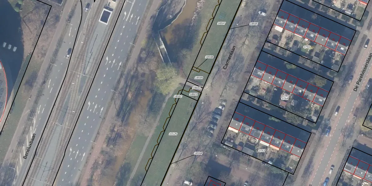 Het perceel waarop Carmenlaan 114 staat heeft een oppervlakte van 38 m². Dit is een klein perceel. De perceeloppervlakte wordt geregistreerd door het Kadaster. Gedetailleerde informatie over de maten van dit perceel kunt u vinden in het rapport Kadastrale kaart met maatvoering van Carmenlaan 114.