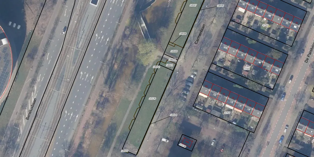 Carmenlaan 122 is gelegen op kadastraal perceel ASV00H10126. Deze kadastrale aanduiding is uniek en wordt gebruikt door het Kadaster om eigendomsrechten en andere zakelijke rechten vast te leggen. Het perceel maakt onderdeel uit van de kadastrale gemeente Amstelveen.