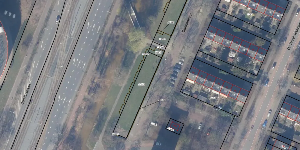 Carmenlaan 124 is gelegen op kadastraal perceel ASV00H10126. Deze kadastrale aanduiding is uniek en wordt gebruikt door het Kadaster om eigendomsrechten en andere zakelijke rechten vast te leggen. Het perceel maakt onderdeel uit van de kadastrale gemeente Amstelveen.