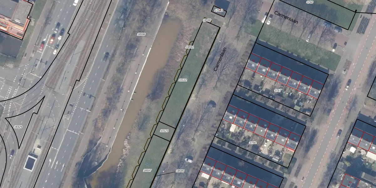 Het perceel waarop Carmenlaan 46 staat heeft een oppervlakte van 570 m². Dit is een groot perceel. De perceeloppervlakte wordt geregistreerd door het Kadaster. Gedetailleerde informatie over de maten van dit perceel kunt u vinden in het rapport Kadastrale kaart met maatvoering van Carmenlaan 46.