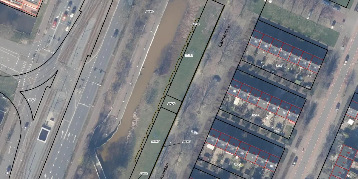 Het perceel waarop Carmenlaan 60 staat heeft een oppervlakte van 570 m². Dit is een groot perceel. De perceeloppervlakte wordt geregistreerd door het Kadaster. Gedetailleerde informatie over de maten van dit perceel kunt u vinden in het rapport Kadastrale kaart met maatvoering van Carmenlaan 60.