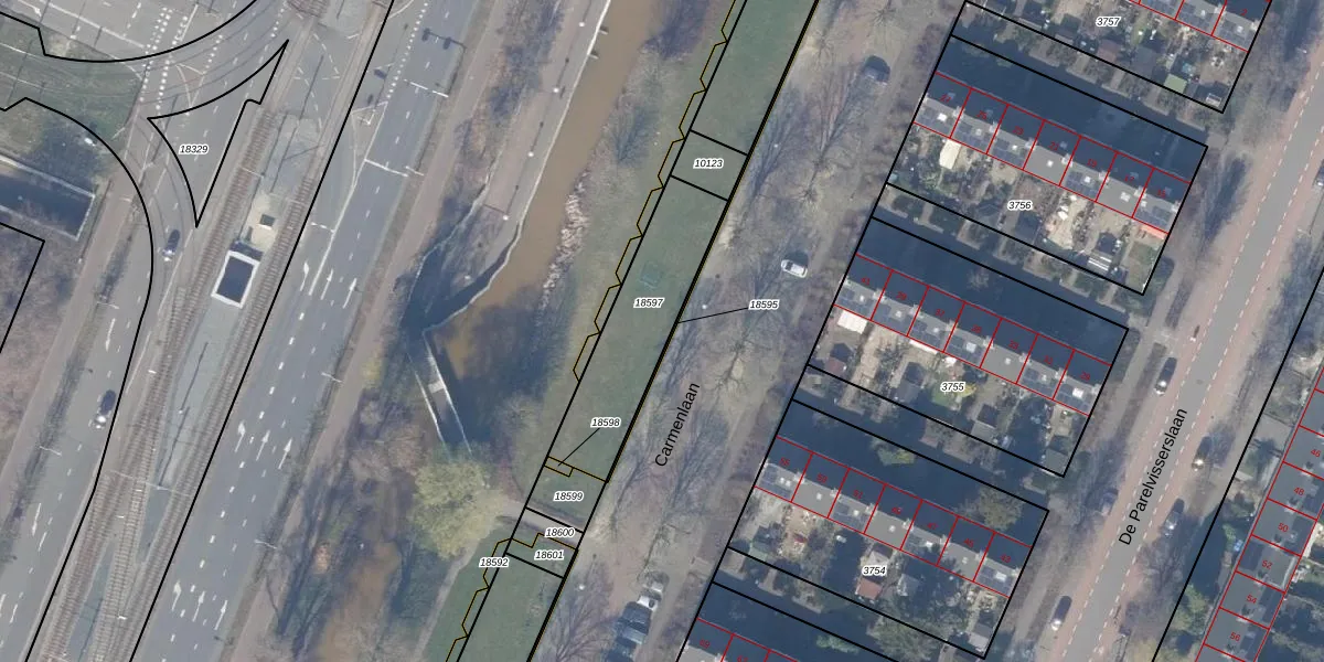 Carmenlaan 88 is gelegen op kadastraal perceel ASV00H18597. Deze kadastrale aanduiding is uniek en wordt gebruikt door het Kadaster om eigendomsrechten en andere zakelijke rechten vast te leggen. Het perceel maakt onderdeel uit van de kadastrale gemeente Amstelveen.
