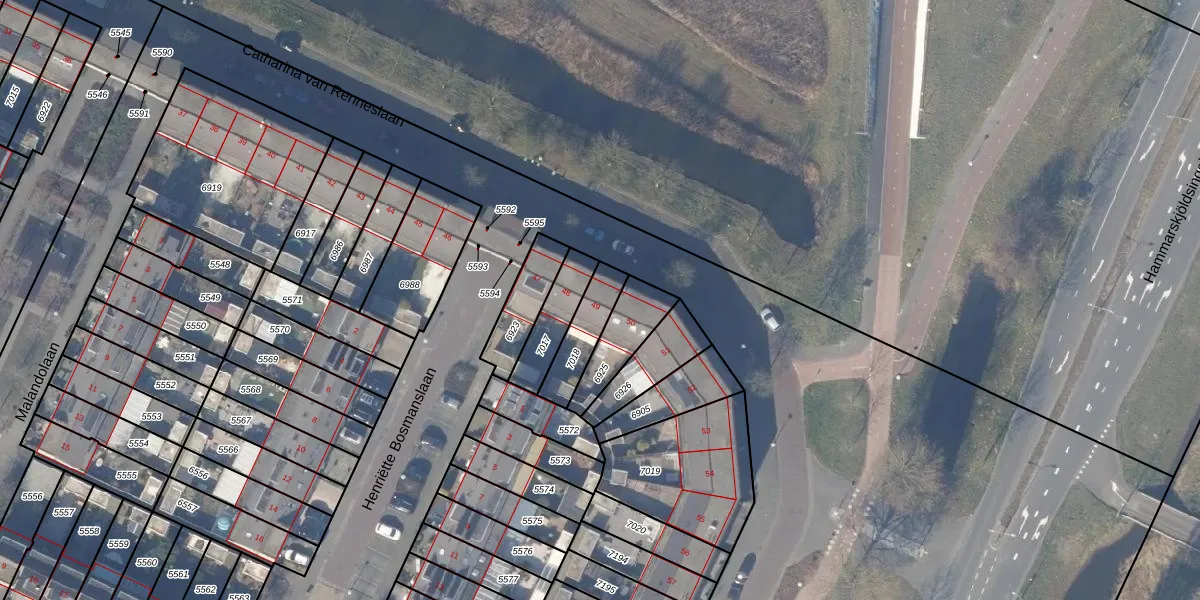 Gebruik de zoekbalk of klik op een perceel voor informatie over de adressen binnen dit perceel.