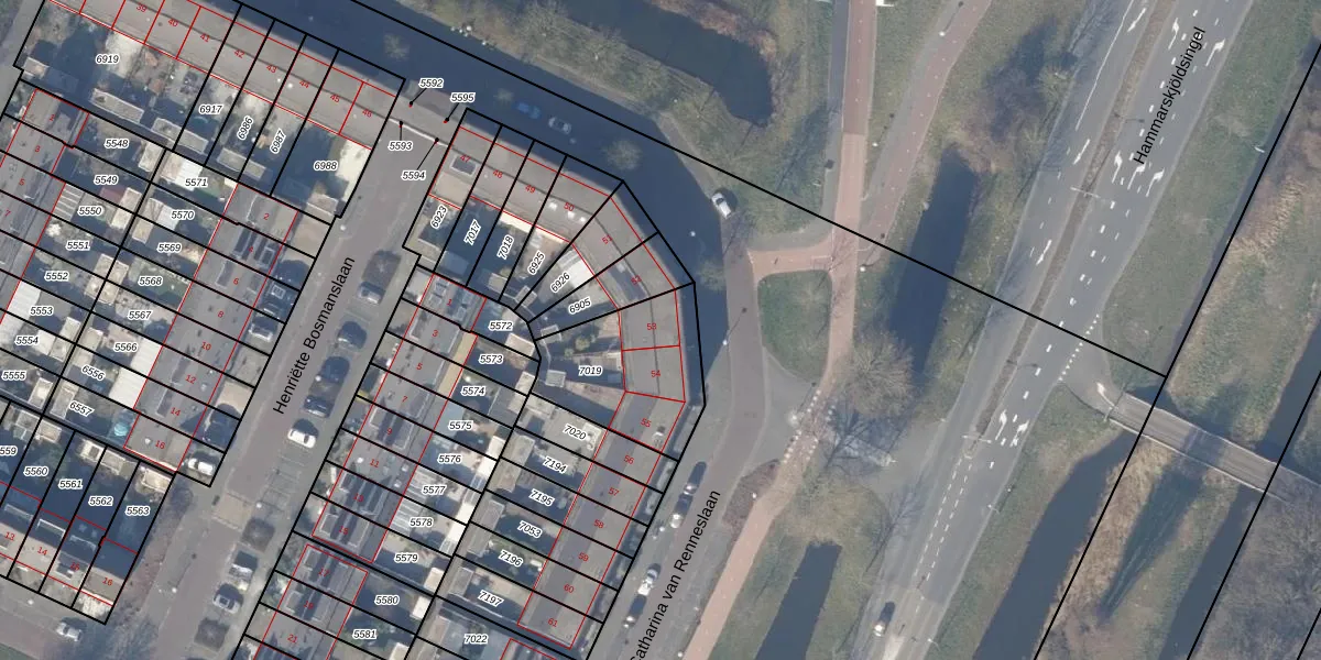 Het perceel waarop Catharina van Renneslaan 53 staat heeft een oppervlakte van 450 m². Dit is een groot perceel. De perceeloppervlakte wordt geregistreerd door het Kadaster. Gedetailleerde informatie over de maten van dit perceel kunt u vinden in het rapport Kadastrale kaart met maatvoering van Catharina van Renneslaan 53.