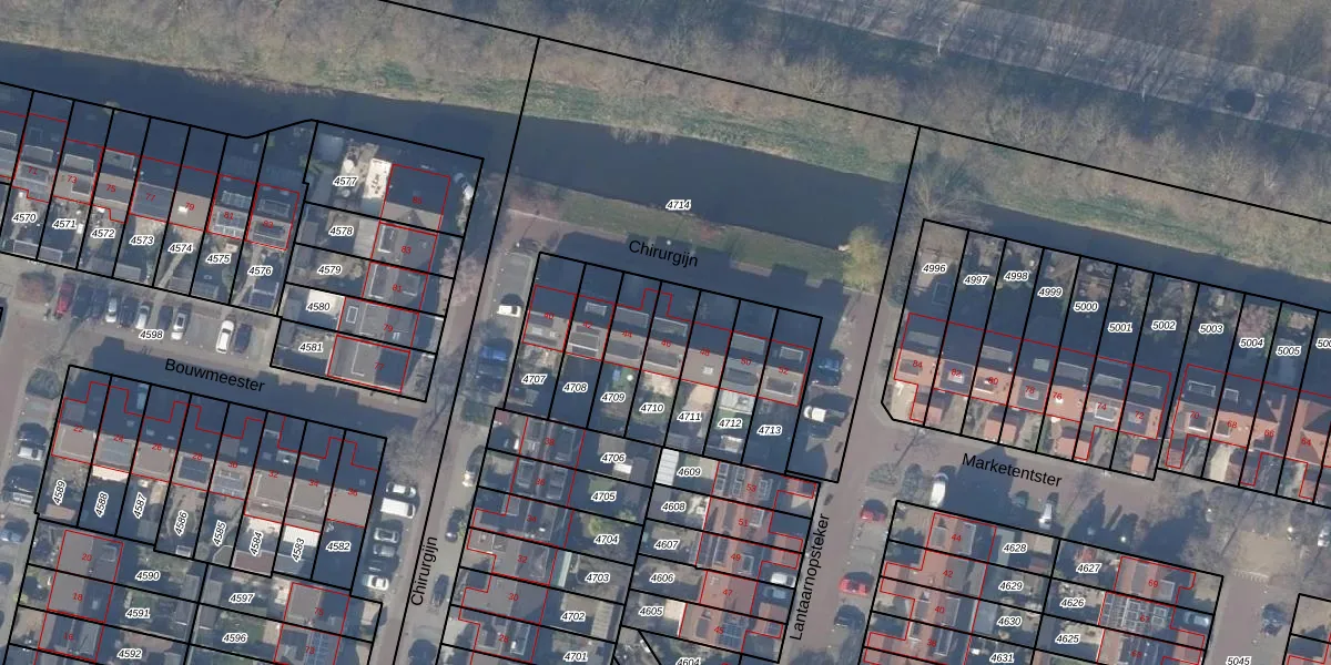 Het perceel waarop Chirurgijn 46 staat heeft een oppervlakte van 146 m². Dit is een middelgroot perceel. De perceeloppervlakte wordt geregistreerd door het Kadaster. Gedetailleerde informatie over de maten van dit perceel kunt u vinden in het rapport Kadastrale kaart met maatvoering van Chirurgijn 46.