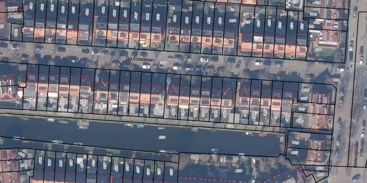Het perceel waarop Da Costalaan 49 staat heeft een oppervlakte van 142 m². Dit is een middelgroot perceel. De perceeloppervlakte wordt geregistreerd door het Kadaster. Gedetailleerde informatie over de maten van dit perceel kunt u vinden in het rapport Kadastrale kaart met maatvoering van Da Costalaan 49.