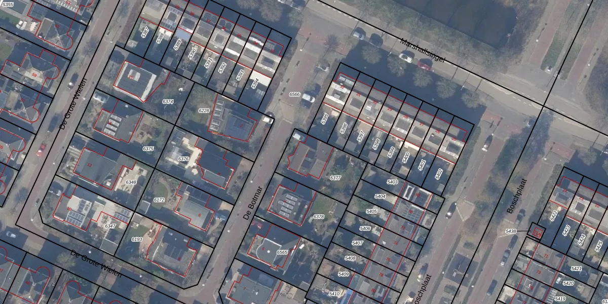 Het perceel waarop De Botmar 1 staat heeft een oppervlakte van 414 m². Dit is een groot perceel. De perceeloppervlakte wordt geregistreerd door het Kadaster. Gedetailleerde informatie over de maten van dit perceel kunt u vinden in het rapport Kadastrale kaart met maatvoering van De Botmar 1.