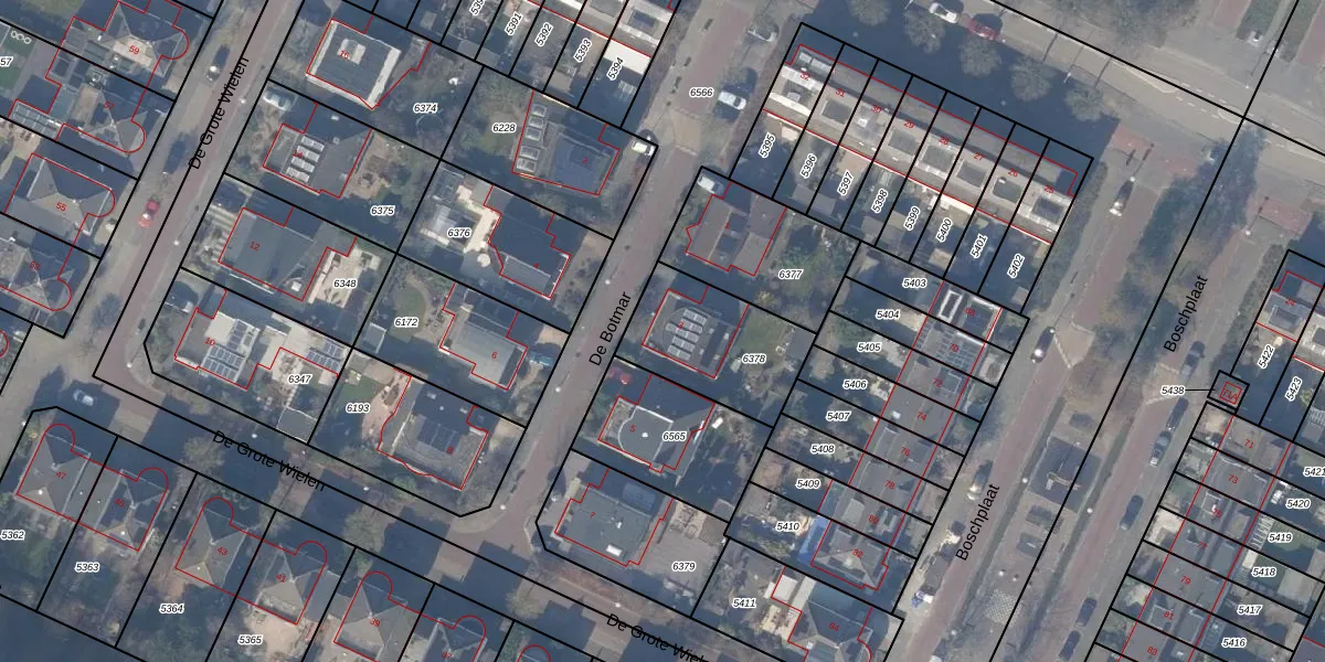 Het perceel waarop De Botmar 3 staat heeft een oppervlakte van 414 m². Dit is een groot perceel. De perceeloppervlakte wordt geregistreerd door het Kadaster. Gedetailleerde informatie over de maten van dit perceel kunt u vinden in het rapport Kadastrale kaart met maatvoering van De Botmar 3.