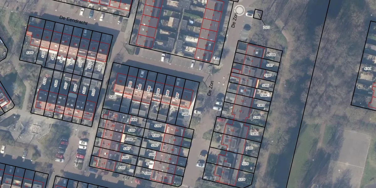 Gebruik de zoekbalk of klik op een perceel voor informatie over de adressen binnen dit perceel.