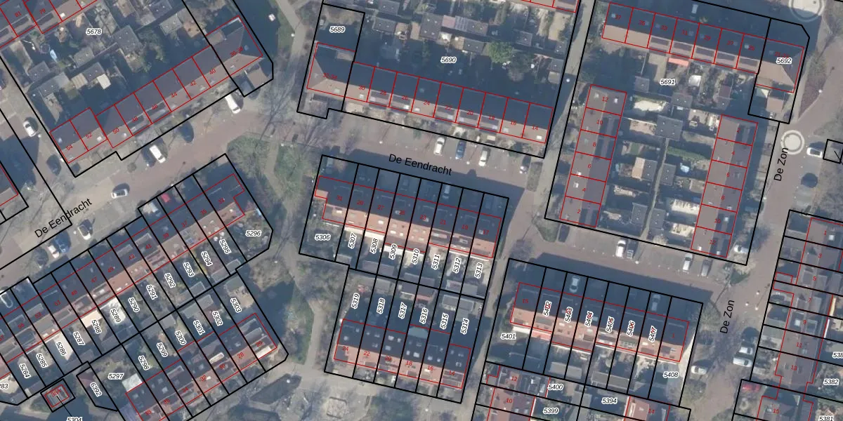 Gebruik de zoekbalk of klik op een perceel voor informatie over de adressen binnen dit perceel.