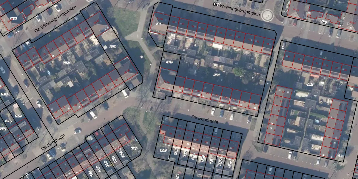 Het perceel waarop De Eendracht 30 staat heeft een oppervlakte van 2683 m². Dit is een zeer groot perceel. De perceeloppervlakte wordt geregistreerd door het Kadaster. Gedetailleerde informatie over de maten van dit perceel kunt u vinden in het rapport Kadastrale kaart met maatvoering van De Eendracht 30.