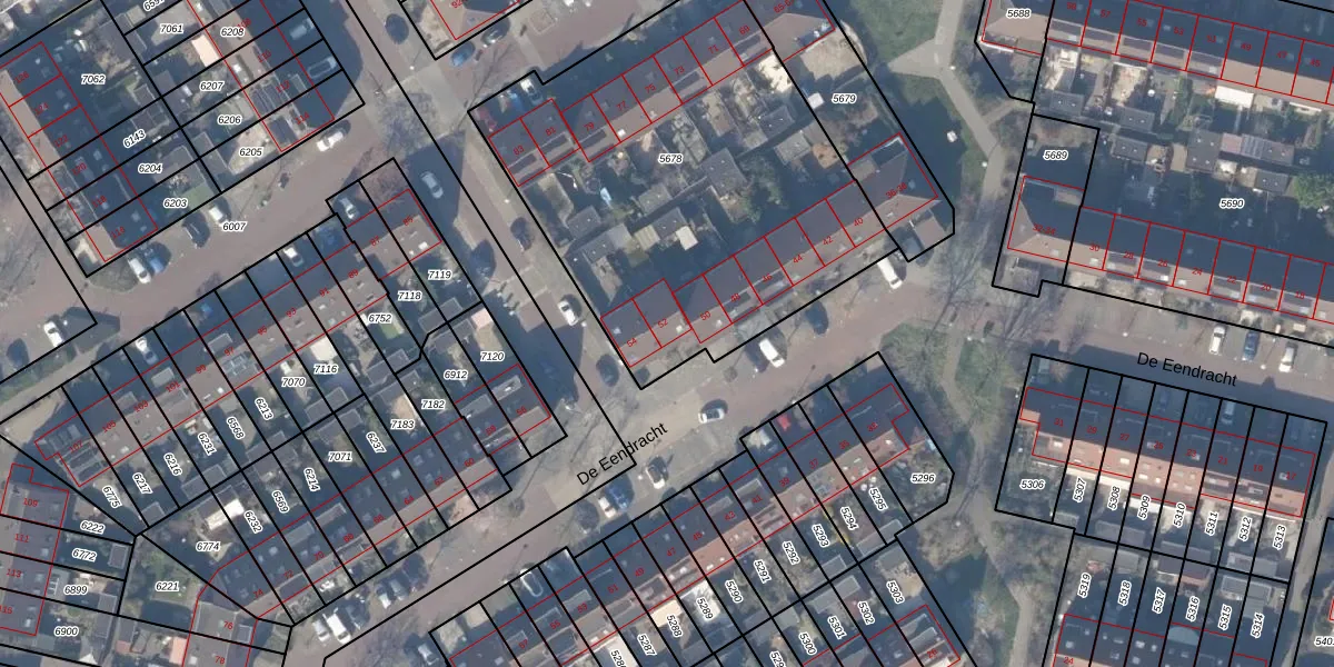 Het perceel waarop De Eendracht 52 staat heeft een oppervlakte van 2150 m². Dit is een zeer groot perceel. De perceeloppervlakte wordt geregistreerd door het Kadaster. Gedetailleerde informatie over de maten van dit perceel kunt u vinden in het rapport Kadastrale kaart met maatvoering van De Eendracht 52.