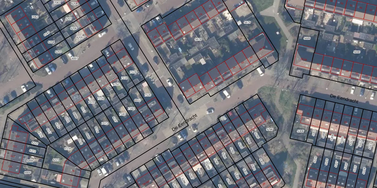 Het perceel waarop De Eendracht 54 staat heeft een oppervlakte van 2150 m². Dit is een zeer groot perceel. De perceeloppervlakte wordt geregistreerd door het Kadaster. Gedetailleerde informatie over de maten van dit perceel kunt u vinden in het rapport Kadastrale kaart met maatvoering van De Eendracht 54.