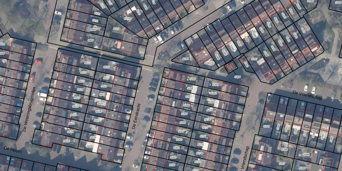 Het perceel waarop De Eendracht 63 staat heeft een oppervlakte van 124 m². Dit is een middelgroot perceel. De perceeloppervlakte wordt geregistreerd door het Kadaster. Gedetailleerde informatie over de maten van dit perceel kunt u vinden in het rapport Kadastrale kaart met maatvoering van De Eendracht 63.