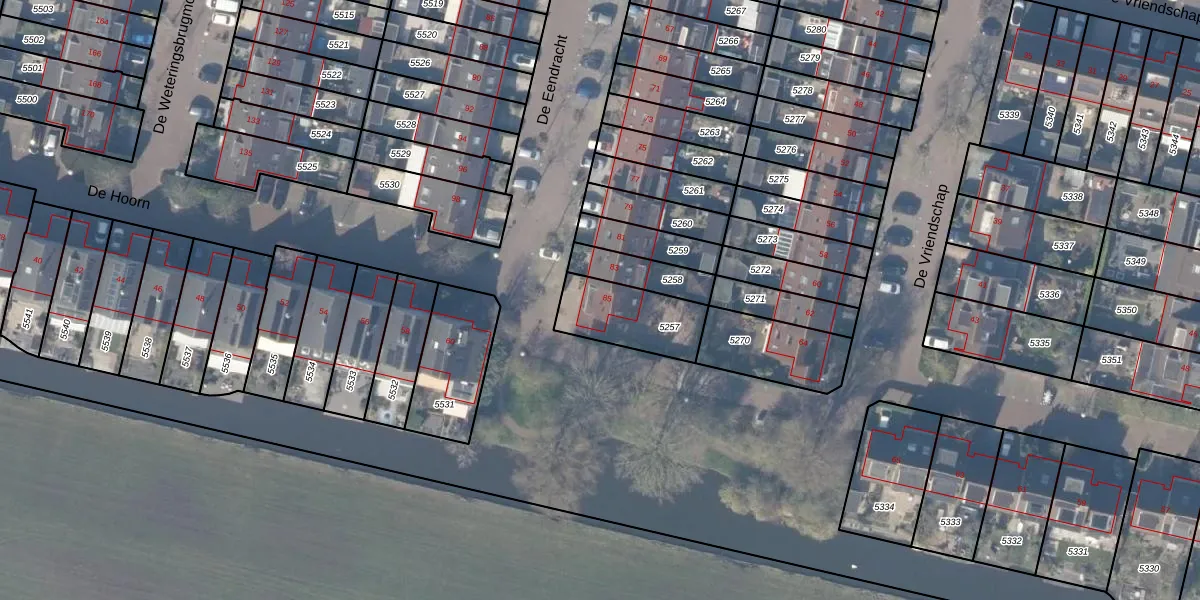 Het perceel waarop De Eendracht 85 staat heeft een oppervlakte van 242 m². Dit is een middelgroot perceel. De perceeloppervlakte wordt geregistreerd door het Kadaster. Gedetailleerde informatie over de maten van dit perceel kunt u vinden in het rapport Kadastrale kaart met maatvoering van De Eendracht 85.